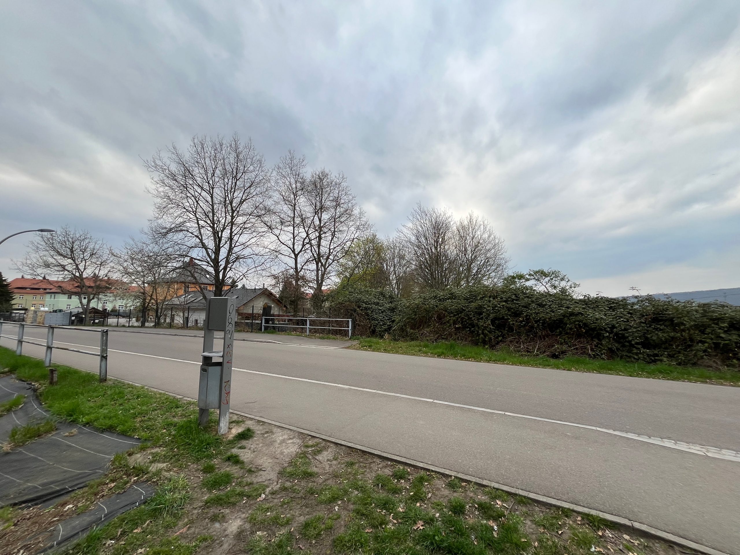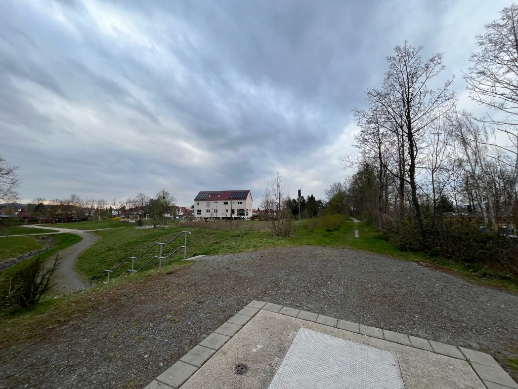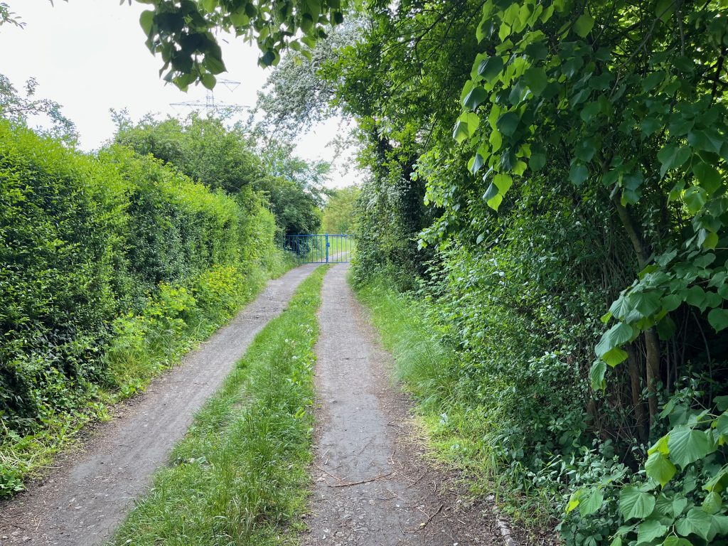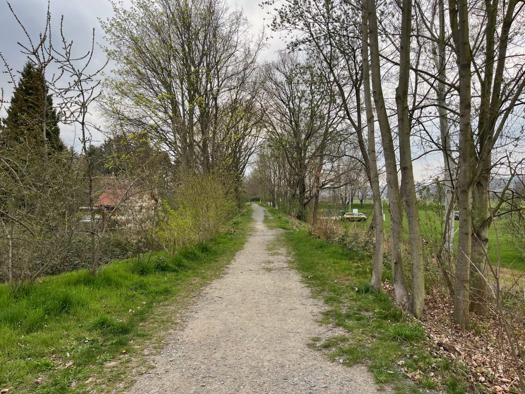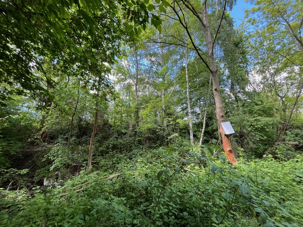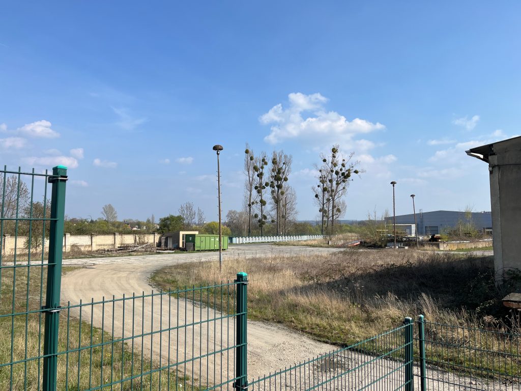 Der Bahndamm im Hintergrund ist noch vollständig erhalten, jedoch gänzlich von Bäumen und Sträuchern überwachsen. Ein begehen ist aktuell nicht möglich, weshalb ich Bilder von weiter unten aufnehmen musste.
