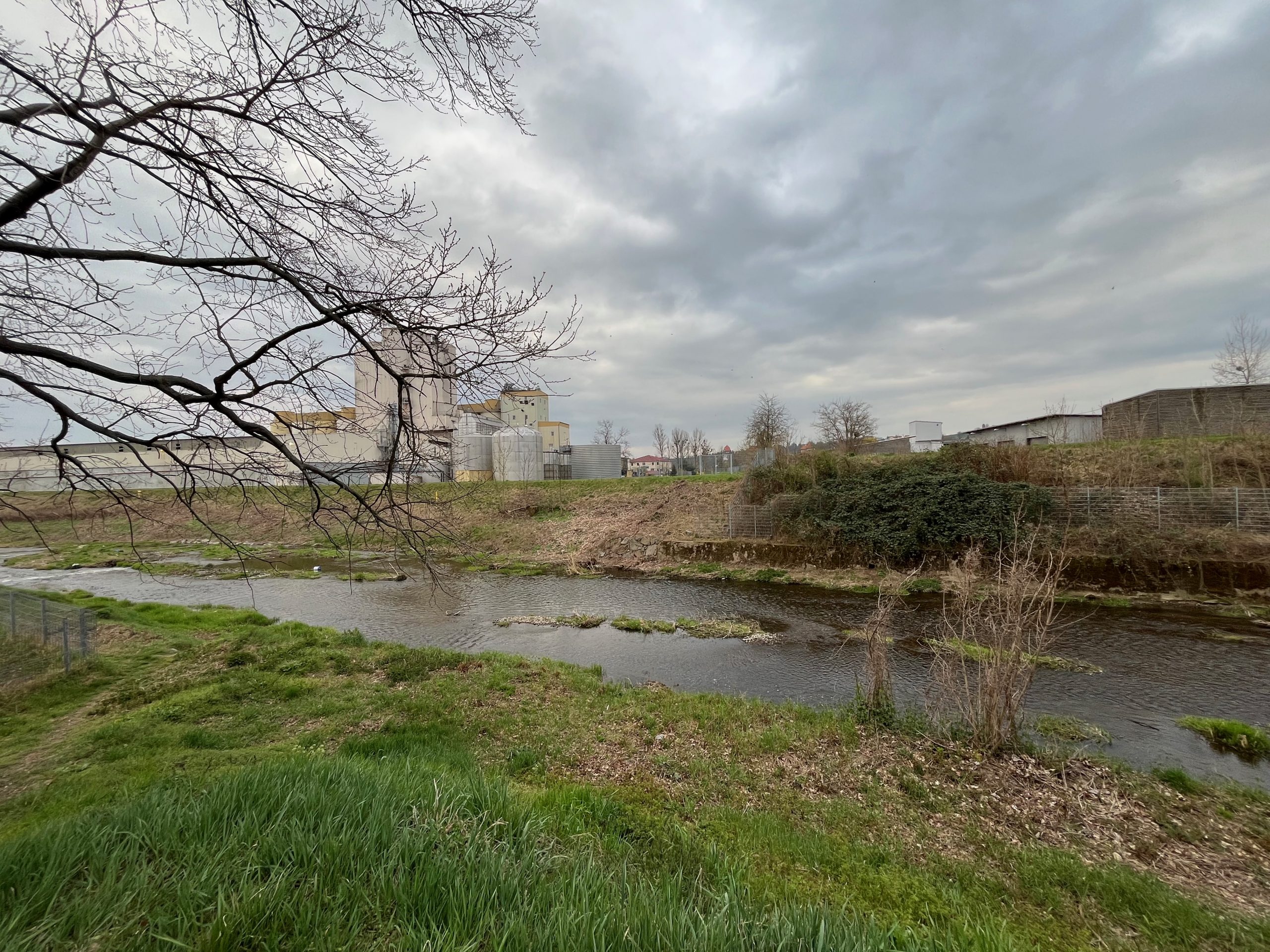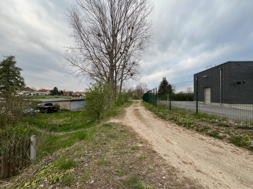 Die ehemalige Eisenbahnüberführung über den Mühlgraben ist einem Bauwerk zum Hochwasserschutz gewichen und der Bahndamm vom neuen Park „Rote Mühle“ bis zur „Elbstraße“ geschottert für Fußgänger begehbar. Künftig könnte der geplante Radweg auf der Elbgeländebahn hier am Park beginnen und bis zur Dresdner Straße führen.