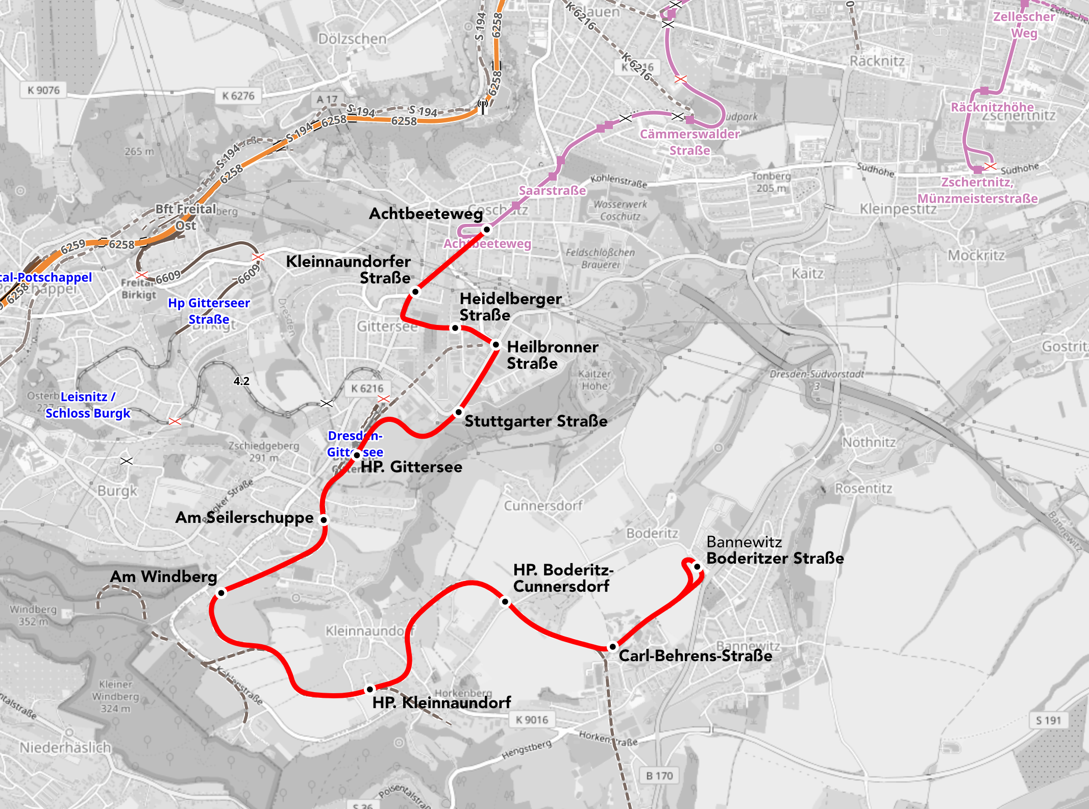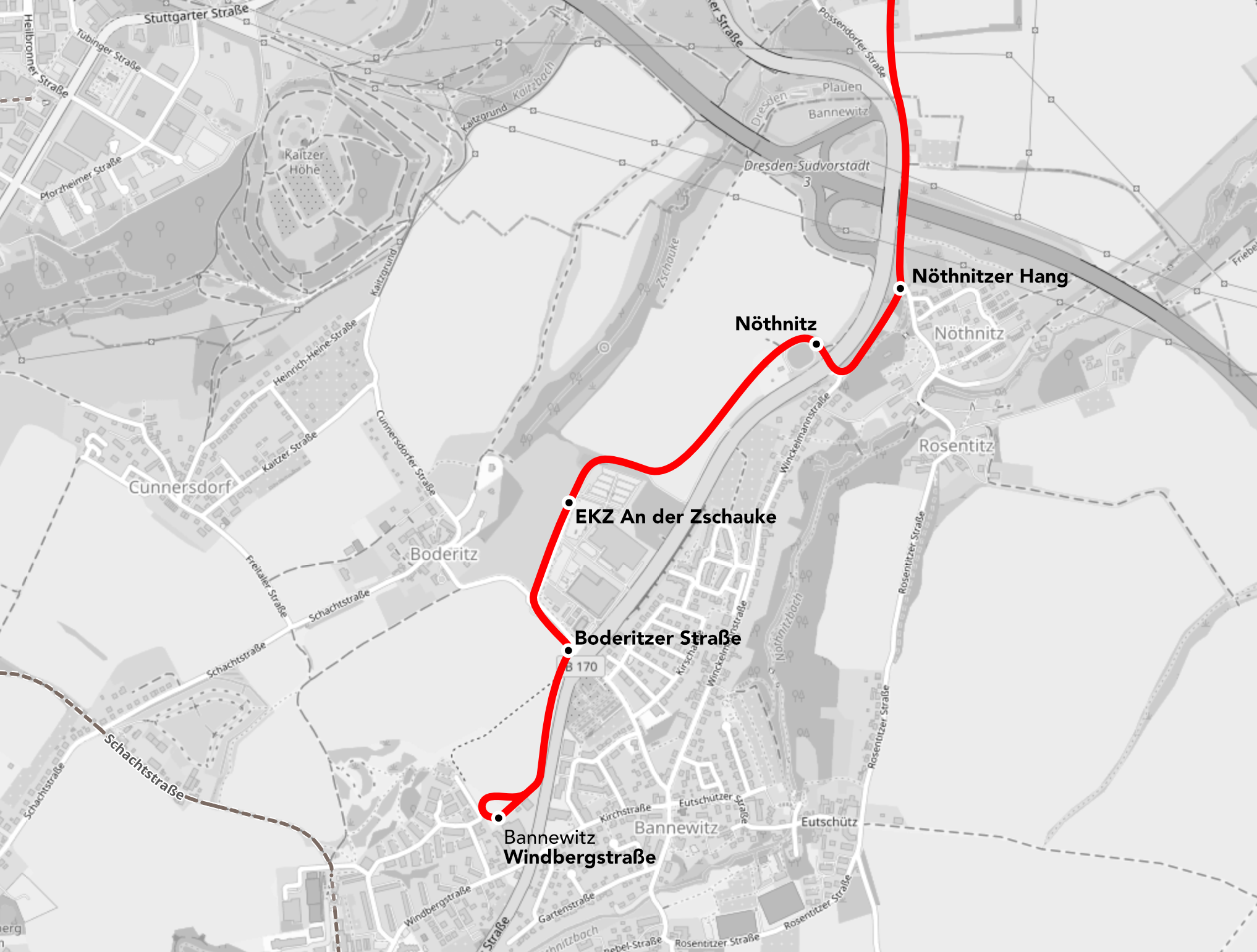 - Finanzieller Aufwand: Die Verlängerung Richtung Bannewitz, mit Abzweigungen zu Einkaufsmöglichkeiten und Wohngebieten, verdoppelt voraussichtlich die ursprünglichen Baukosten und bewegt sich je nach Planung und Brückenbedarf in Richtung 40 Millionen Euro.